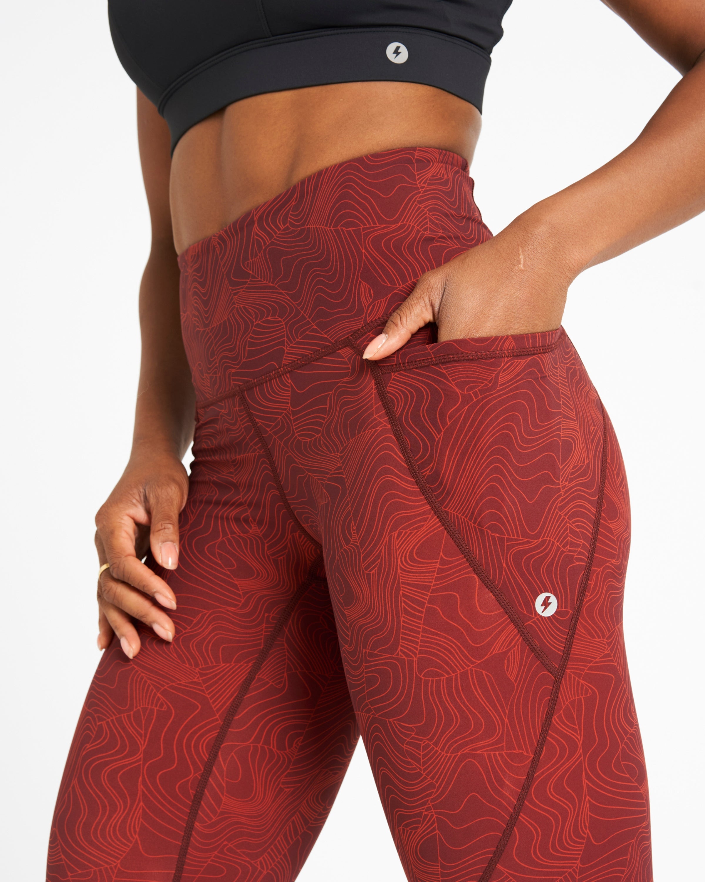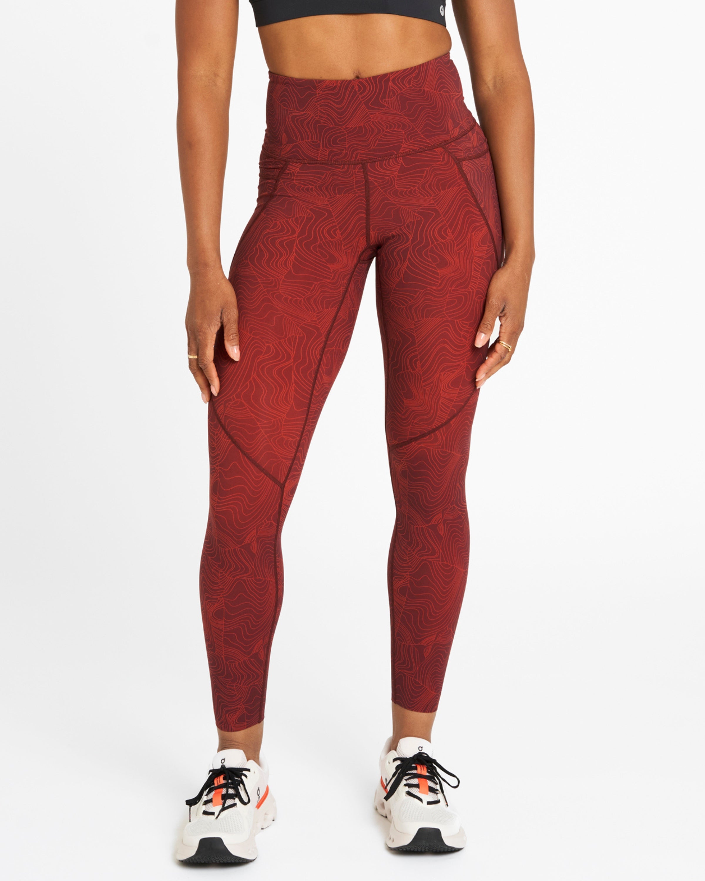 Sculpt High-Waisted Leggings Wave Print Dark Burgundy