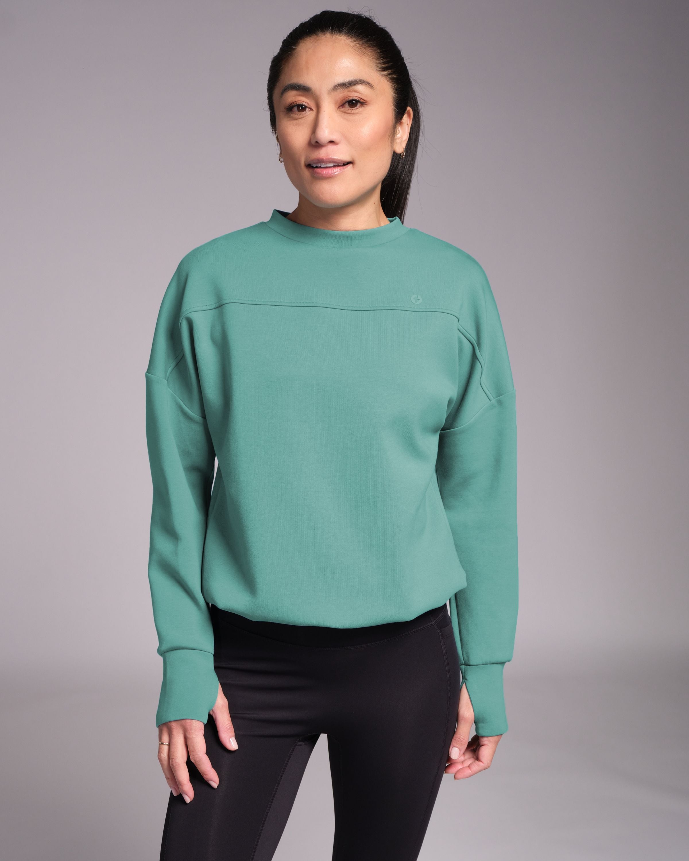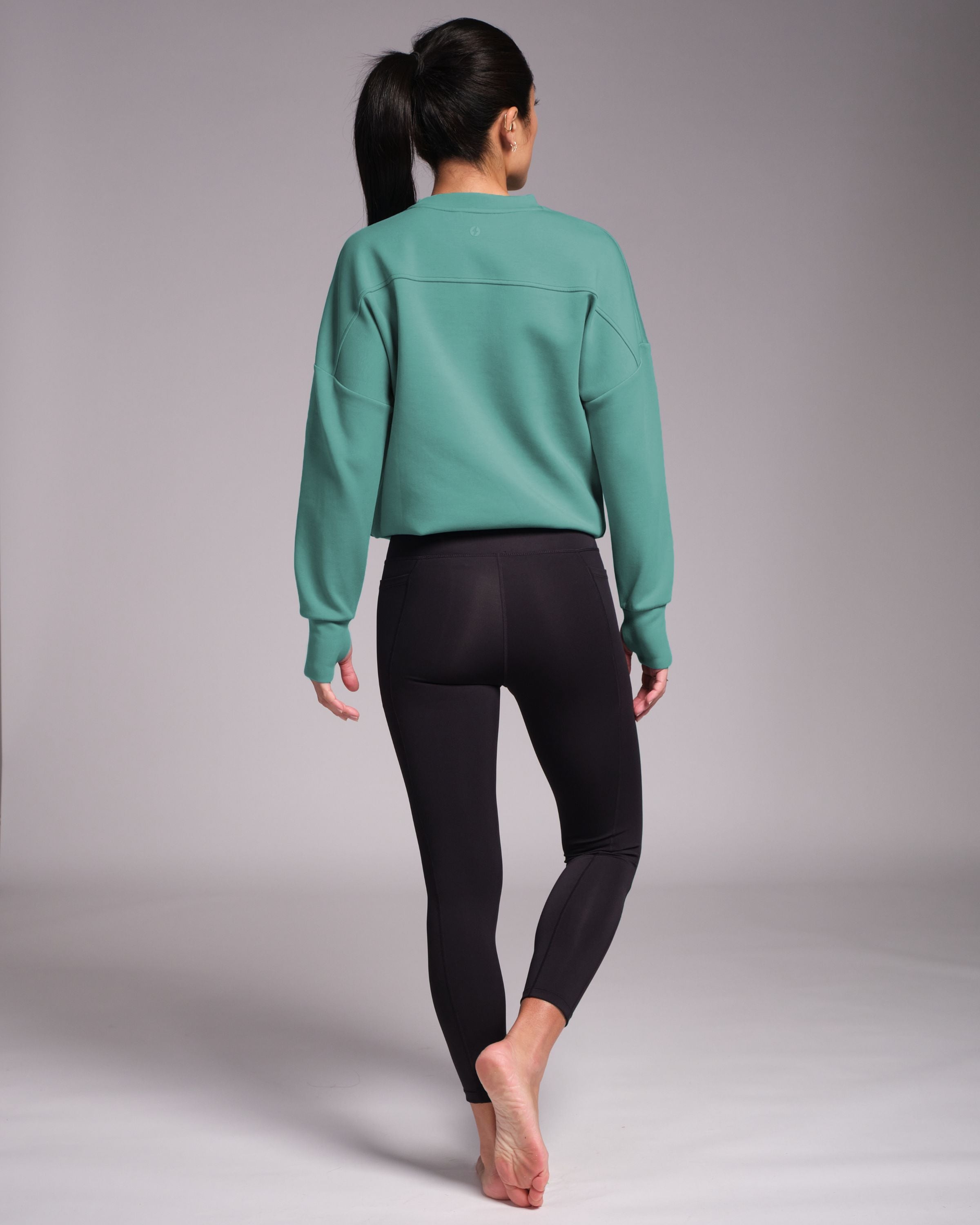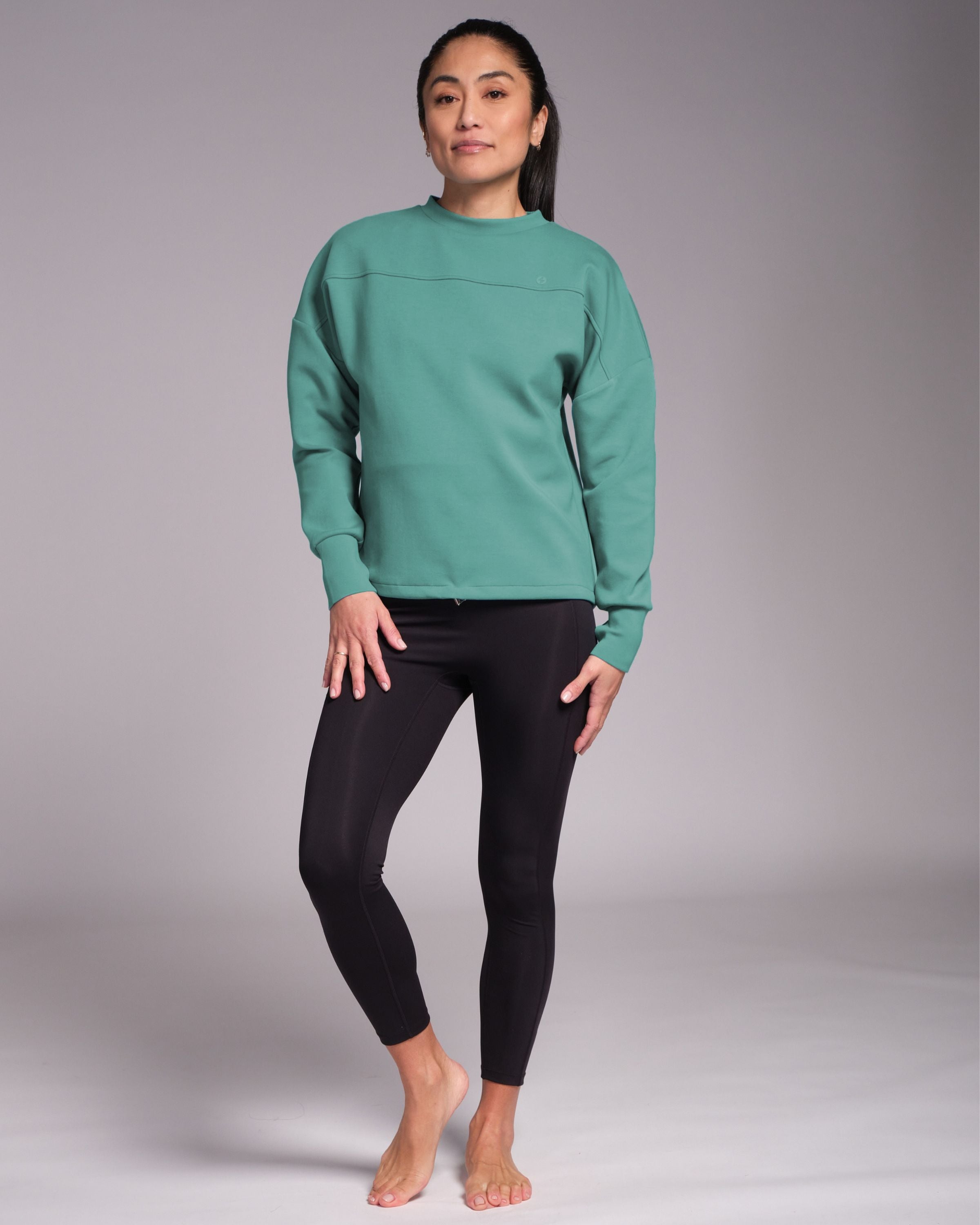 Designed with a unique neck line and dropped shoulder for an elegant silhouette, Studio Crew is luxuriously soft to the touch. We've added an adjustable drawcord too so you can wear it long or cropped, depending on what mood you're in. Before class or after class, Studio Crew is your practice companion.