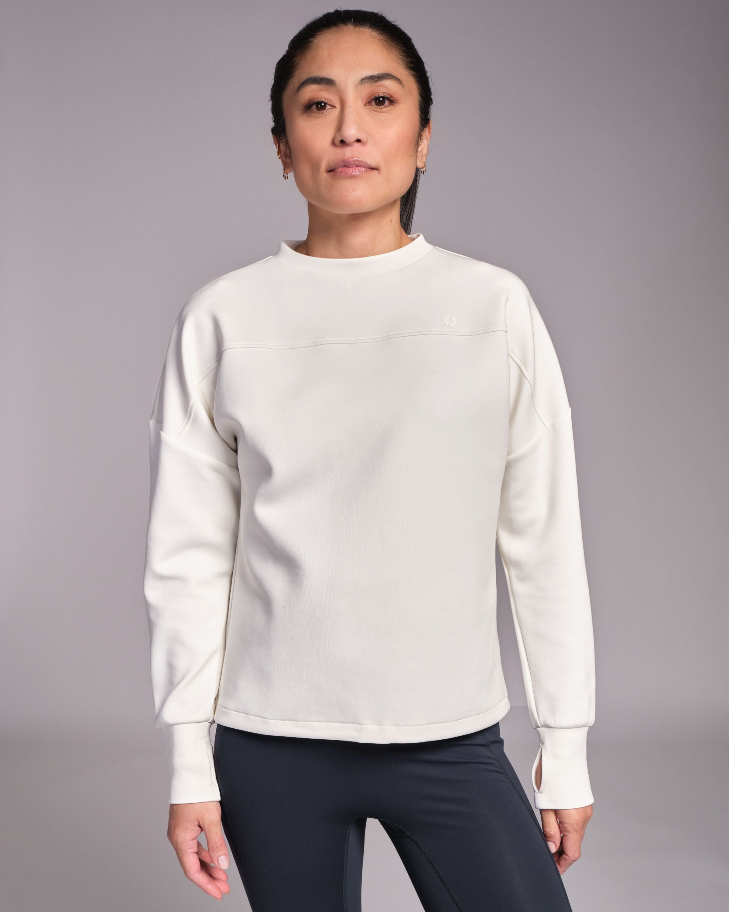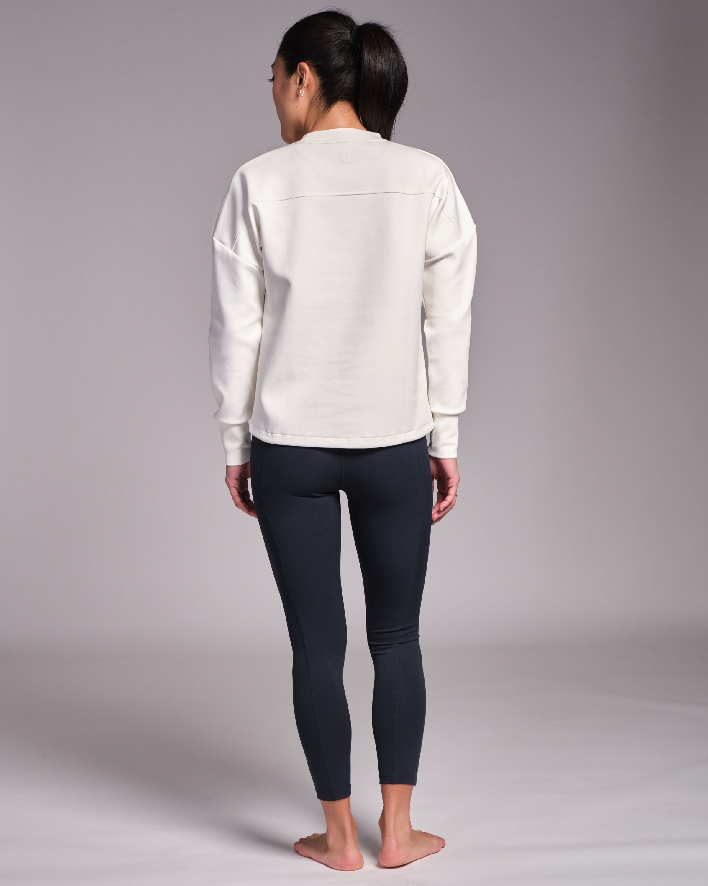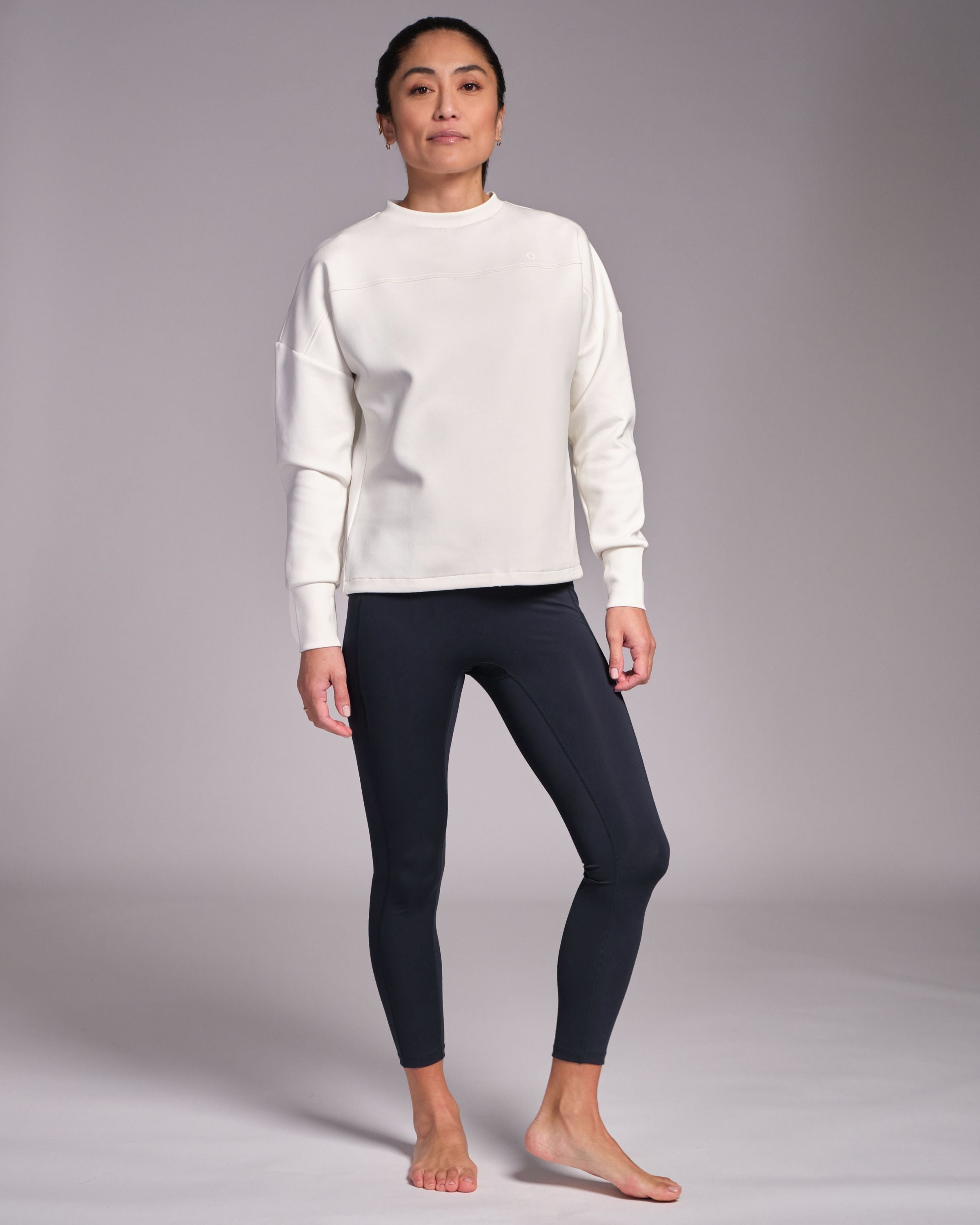 Designed with a unique neck line and dropped shoulder for an elegant silhouette, Studio Crew is luxuriously soft to the touch. We've added an adjustable drawcord too so you can wear it long or cropped, depending on what mood you're in. Before class or after class, Studio Crew is your practice companion.