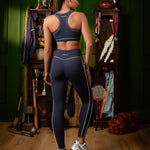 Legacy Piping Detail High Waisted Leggings Retro Navy